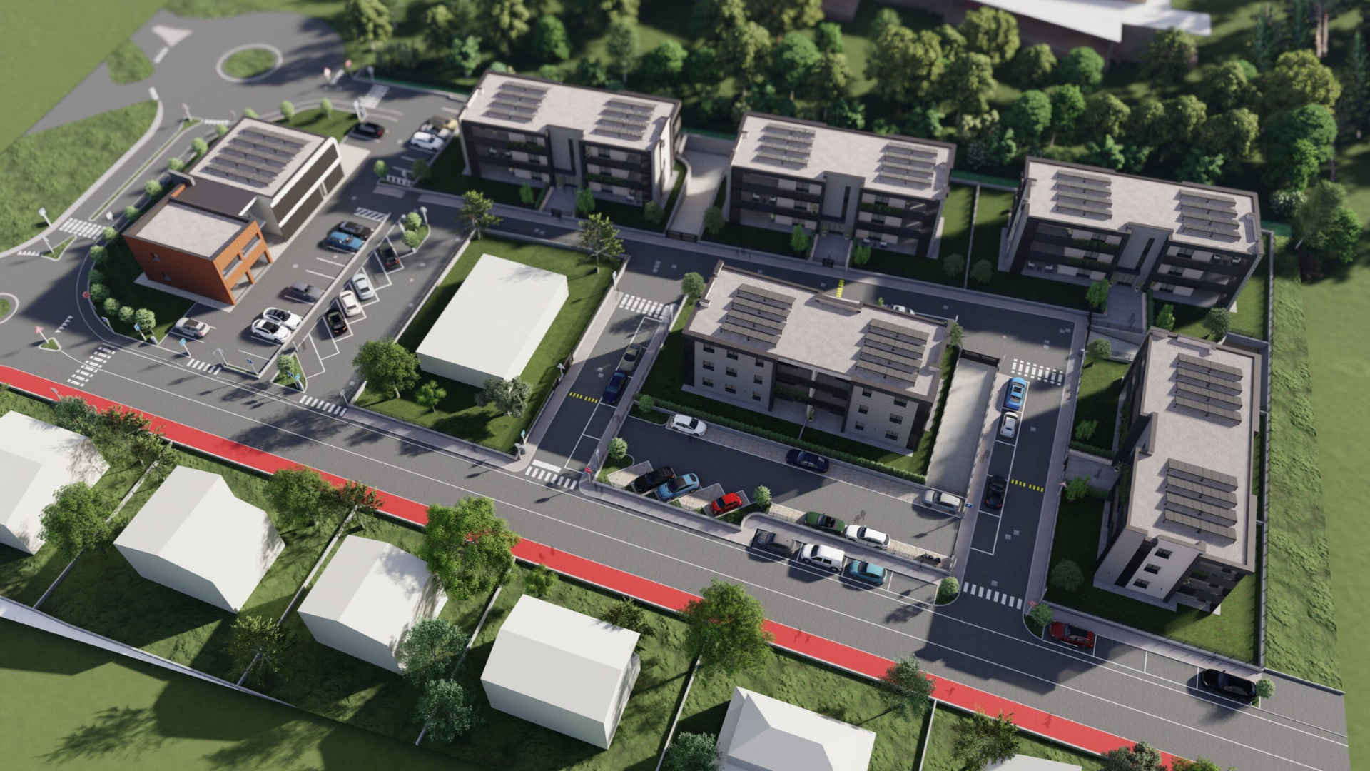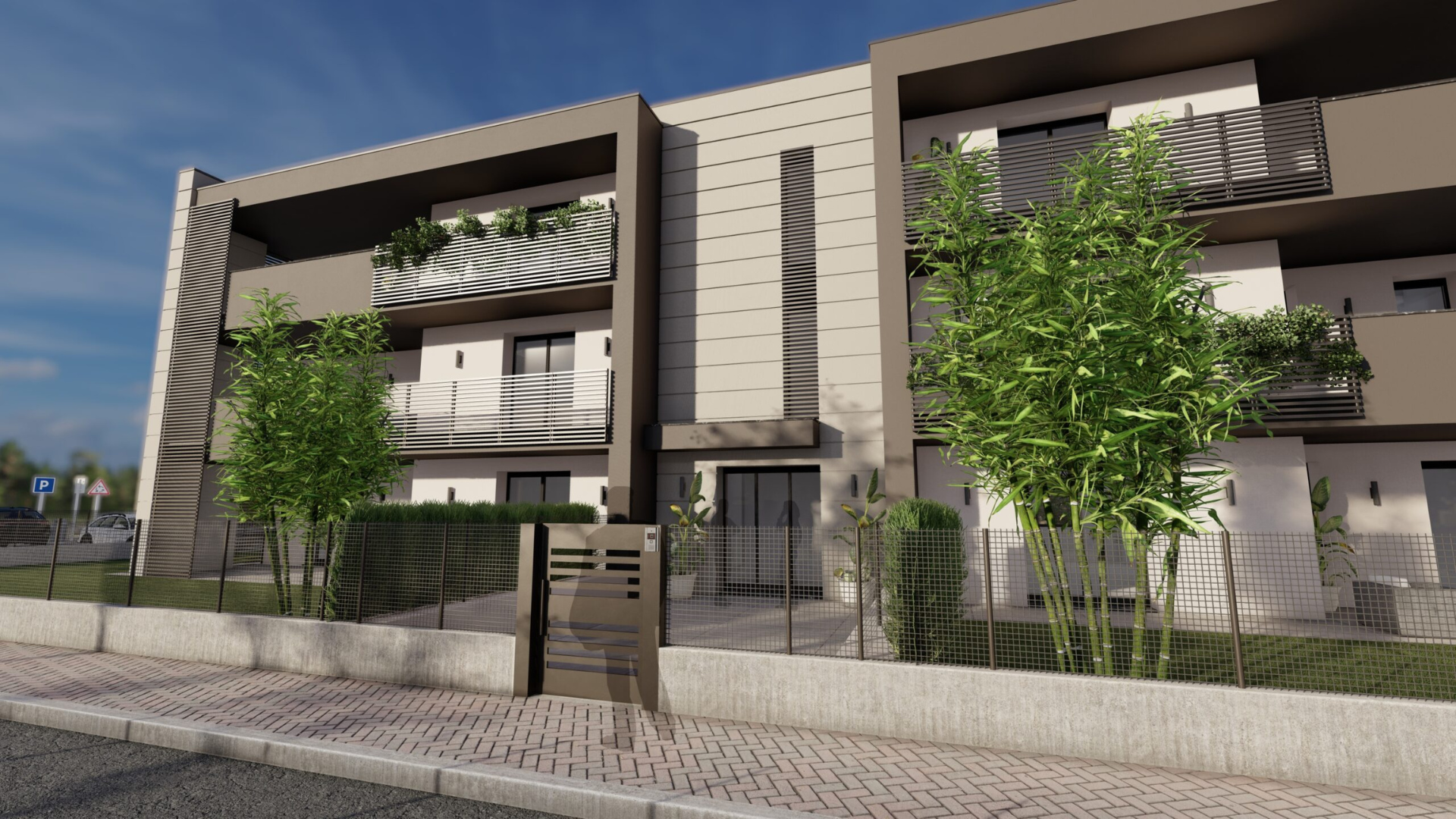 Il progetto prevede la realizzazione di un totale di 12 unità abitative nello specifico 10 ville in bifamiliare e 2 ville unifamiliari completamente indipendenti, ciascuna dotata di porticati, giardino esclusivo e autorimessa.